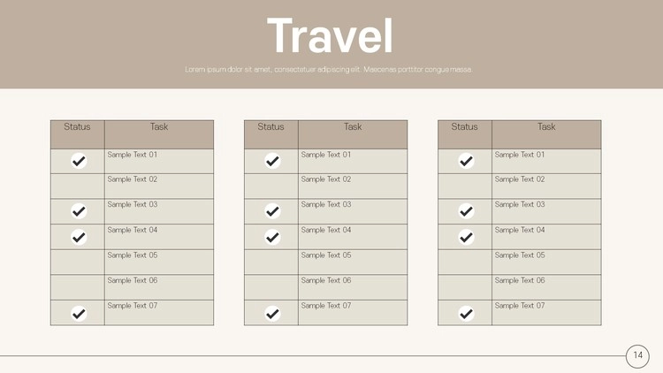 총 20장으로 구성되어 있으며 슬라이드마스터 메뉴를 활용하여 원하는 이미지로 쉽게 변경할 수 있습니다. 모든 텍스트, 도형 디자인, 아이콘 개체 등 디자인 변경이 가능합니다. 베이지 톤 색 조합으로 제작했습니다.
