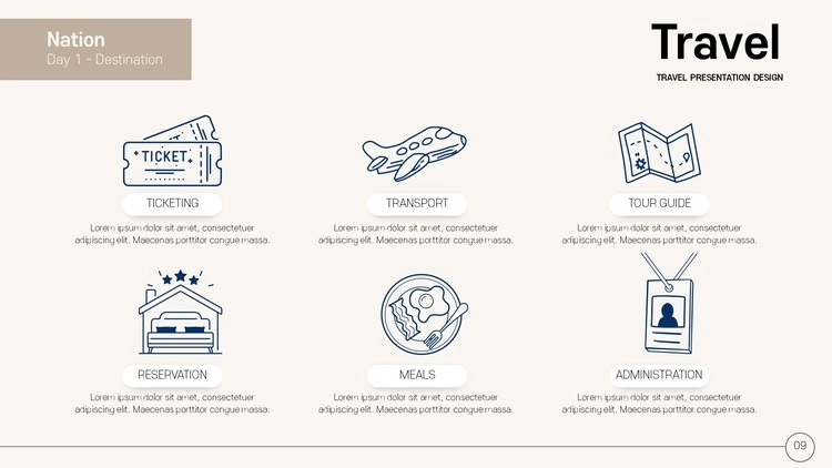 관광 계획 및 여행 일정표 구성, 여행지 소개, 해외 문화 소개, 여행사 가이드 자료, 패키지 소개 등 각종 주제로 활용할 수 있는 프레젠테이션 양식입니다.
