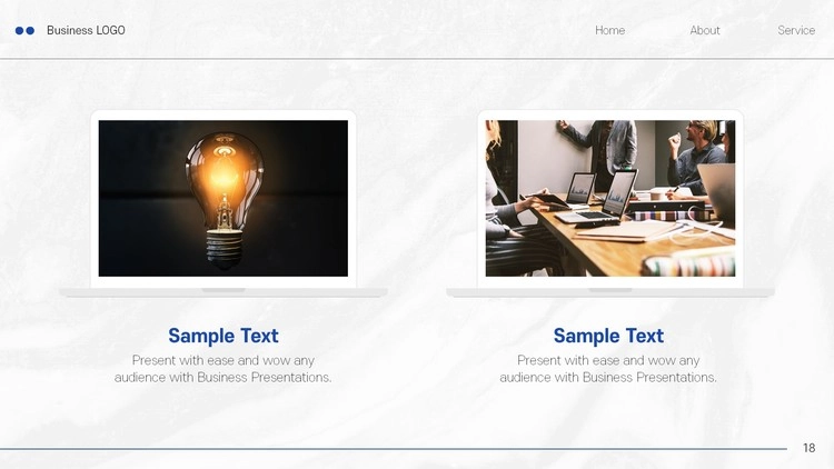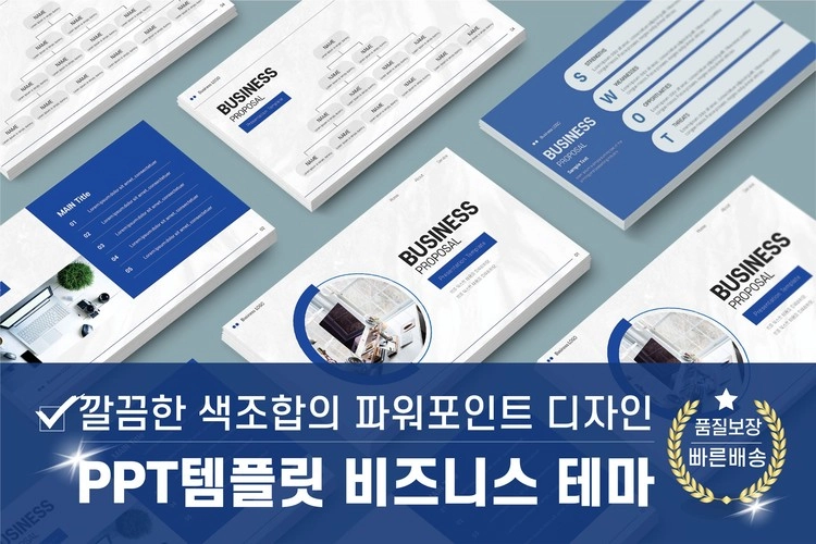 깔끔한 파랑색 색 조합 기반으로 제작됐으며 컨셉에 따라 컬러 변경이 가능하며 모든 도형 개체, 텍스트 변경이 가능합니다.