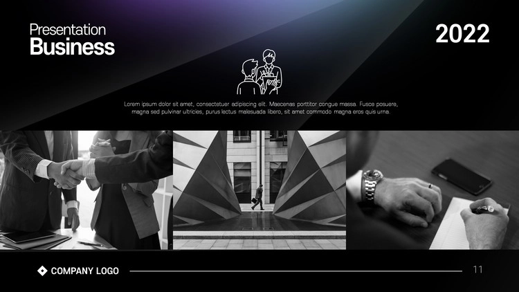 시크하고 깔끔한 색조합 기반으로 심플한 프레젠테이션 디자인을 제작해보세요.