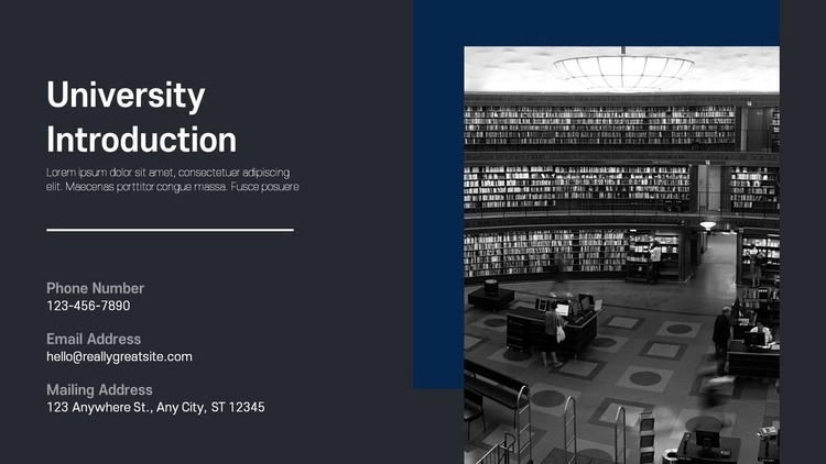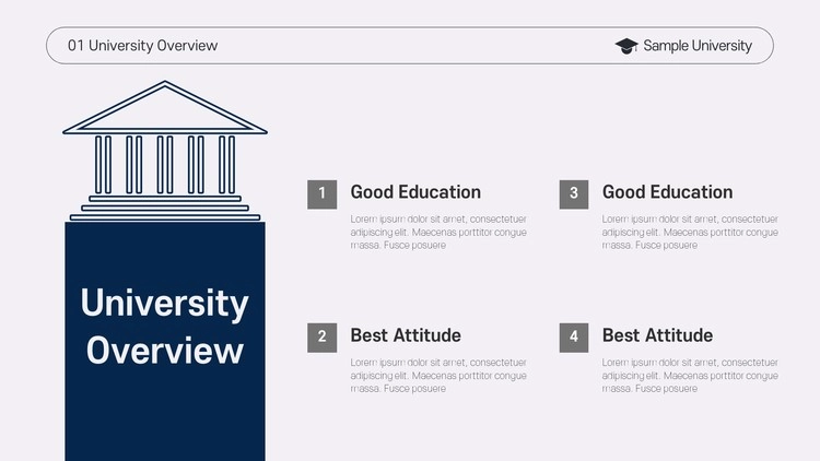 대학교 소개 PPT 자료 제작 및 입학 사정관 자료, 대학 수시 및 정시 설명회, 학교 시설 및 학과 커리큘럼 소개 등 관련된 내용을 심플한 프레젠테이션 템플릿을 응용하여 제작할 수 있습니다.